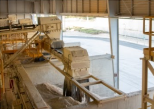 Después del alimentador vibrante, el material se dirige a un