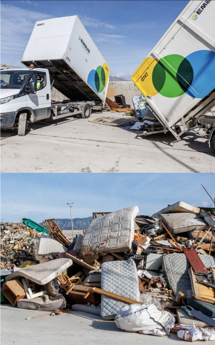 Después de descargar los residuos voluminosos, los muebles y